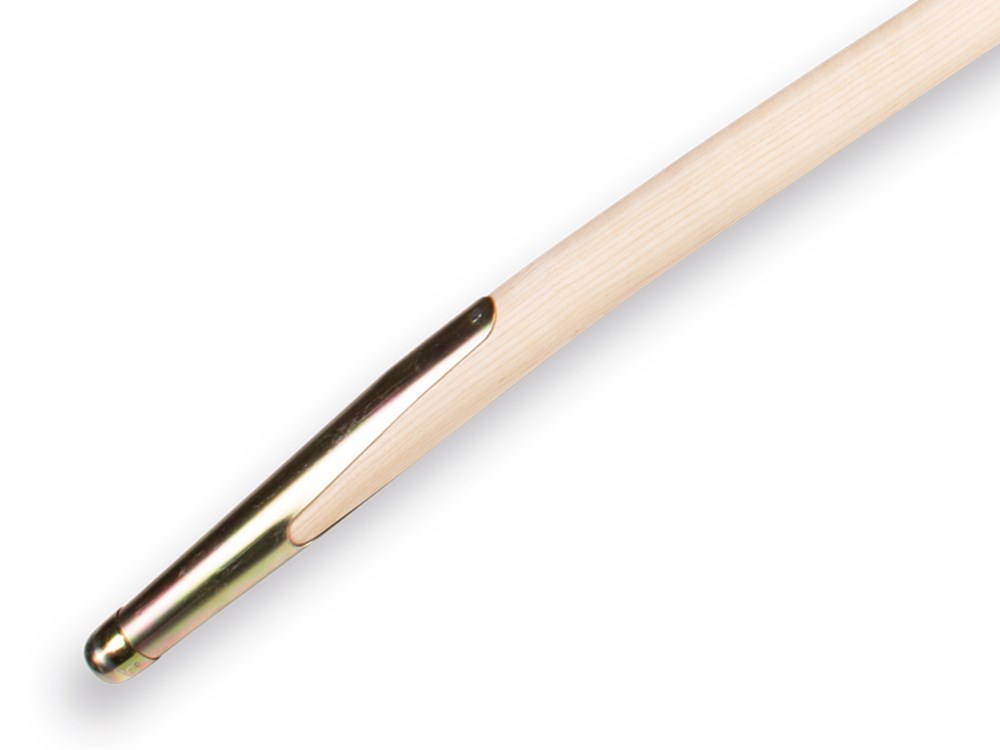 Mestvorksteel of rieksteel ATLAS van Essenhout, gebogen model met een lengte van 160 cm, voorzien van een veerbus en een geboord gat. Geschikt voor vorken met een stiftaansluiting.