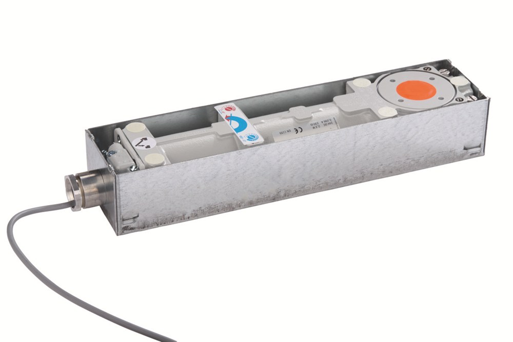 Brand-of rook compartimerende deuren kunnen comfortabel en in traploos instelbare openingshoek worden vastgezet d.m.v. de elektrische vastzetbare dormakaba BTS 80 EMB.
