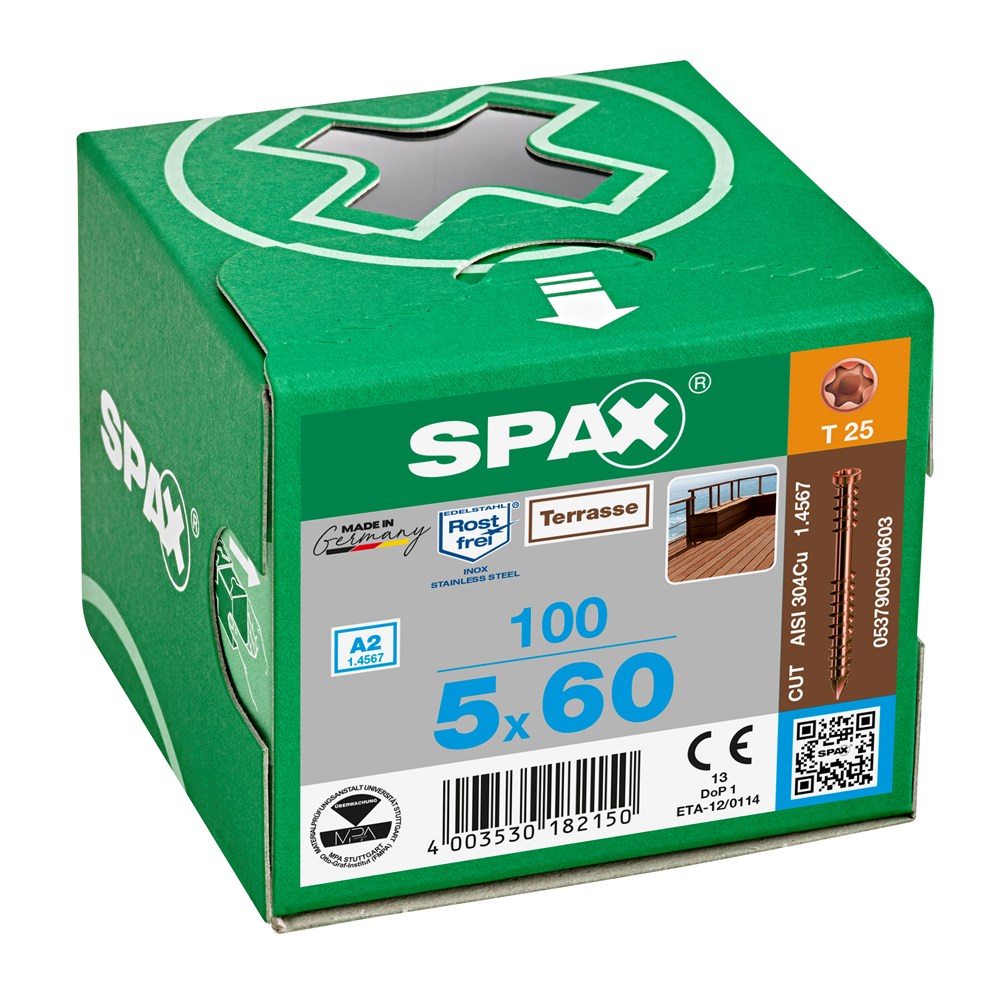 SPAX TERRASSCHROEF ANTIEK CILINDERKOP T-STAR PLUS TX25 DD RVS A2 5,0X60MM 100ST