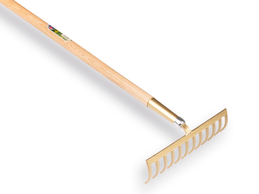 Tuinhark ATLAS met 12 gebogen tanden. Gehard stalen hark compleet met gelakte Essen steel 170 x 2,8 cm. Deze hark met gebogen tanden is ideaal voor het maken van een zaaibed, het egaliseren/onkruid vrij houden van grindpaden en het fijn maken en egaliseren van grond. De stevige lange gelakte steel voelt prettig aan en is eenvoudig schoon te maken. Merk: Atlas, OFFNER.