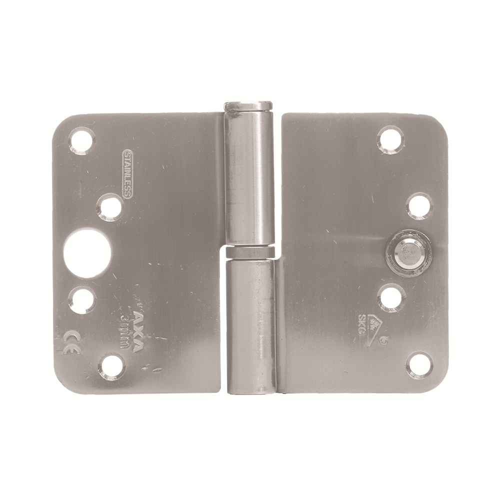 Solide, lichtlopende, inbraakwerende roestvaststalen AXA veiligheids kogelstiftpaumelle met een hoog draagvermogen en ronde hoeken.