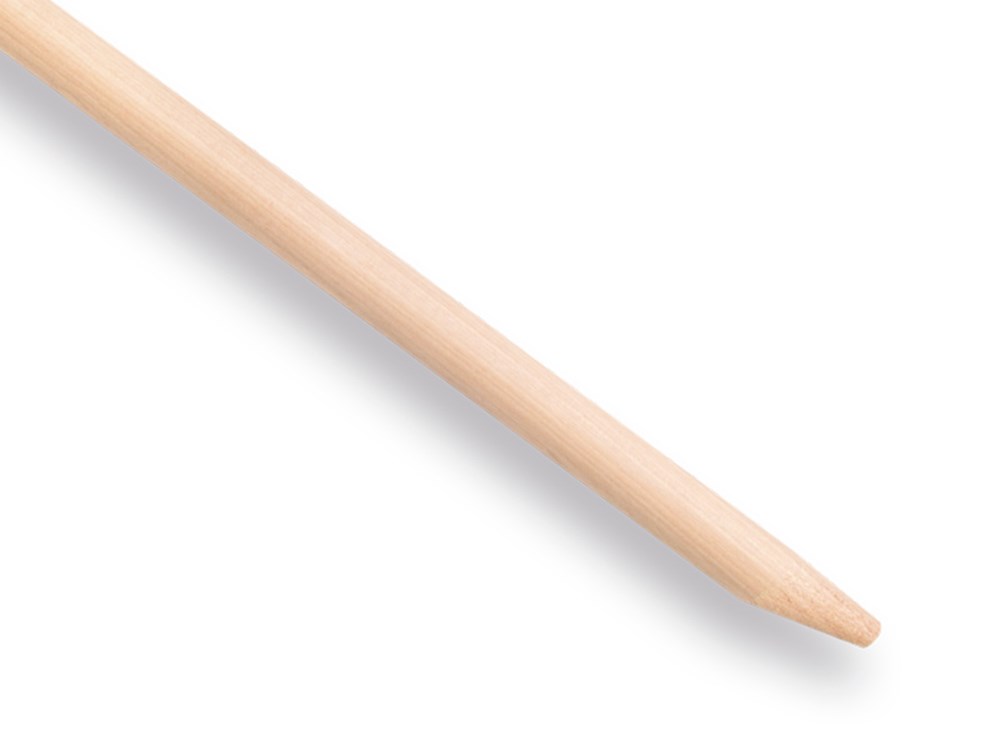 Haksteel ATLAS met excentrische punt, in lengte 170 en diameter 3,2 cm. Deze zware uitvoering is geschikt voor gesmede hakken met een excentrische dul. De steel is gemaakt van sterk hardhout en wordt comfortabel glad afgewerkt.