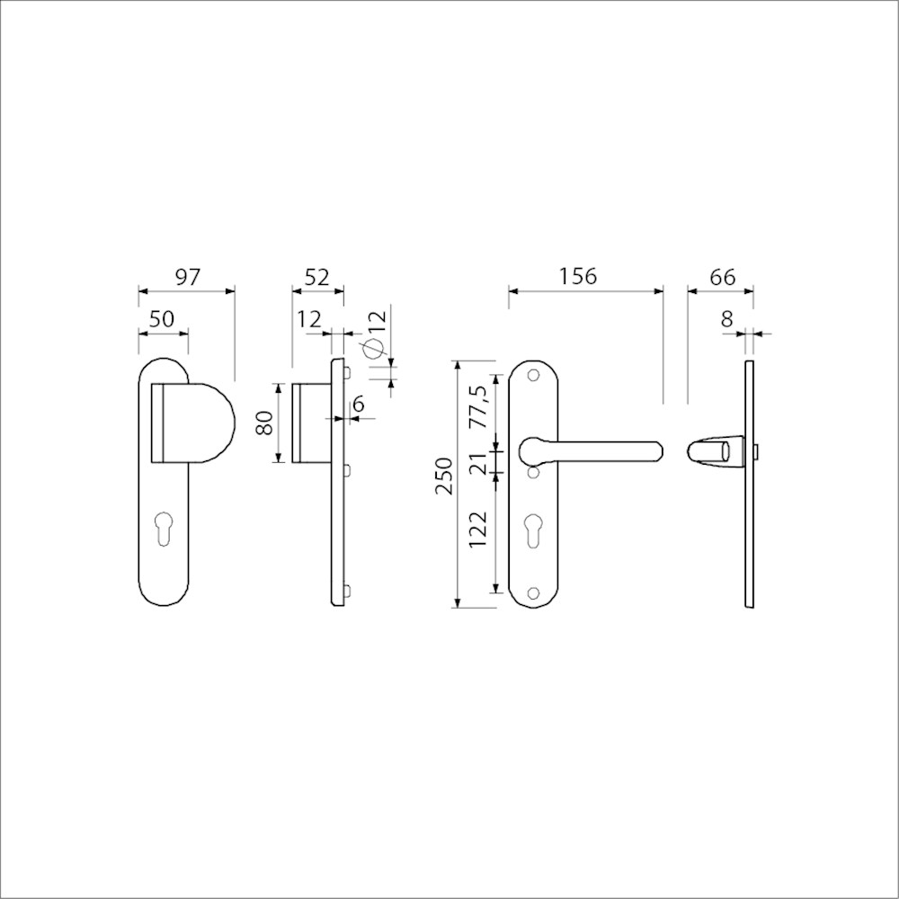Buitenschild 12 mm met deurduwer 90/83, binnenschild 8 mm