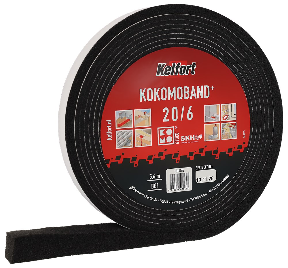 Type Kokomoband. Gecomprimeerd afdichtingsband bestaande uit polyurethaan schuim met neopreen rubber impregnering. Slagregendicht, damp-open en volgt de voegbeweging. Wordt vooral toegepast als regendichte kering in verticale voegen van buitengevelvlakken bestaande uit beton, metselwerk, natuursteen, metaal, kunststof en hout. Een tweede voegdichting aan de binnenzijde is noodzakelijk indien een luchtdichting moet worden gerealiseerd. Het product zwelt na montage op. Volgens DIN 18542 BG1.