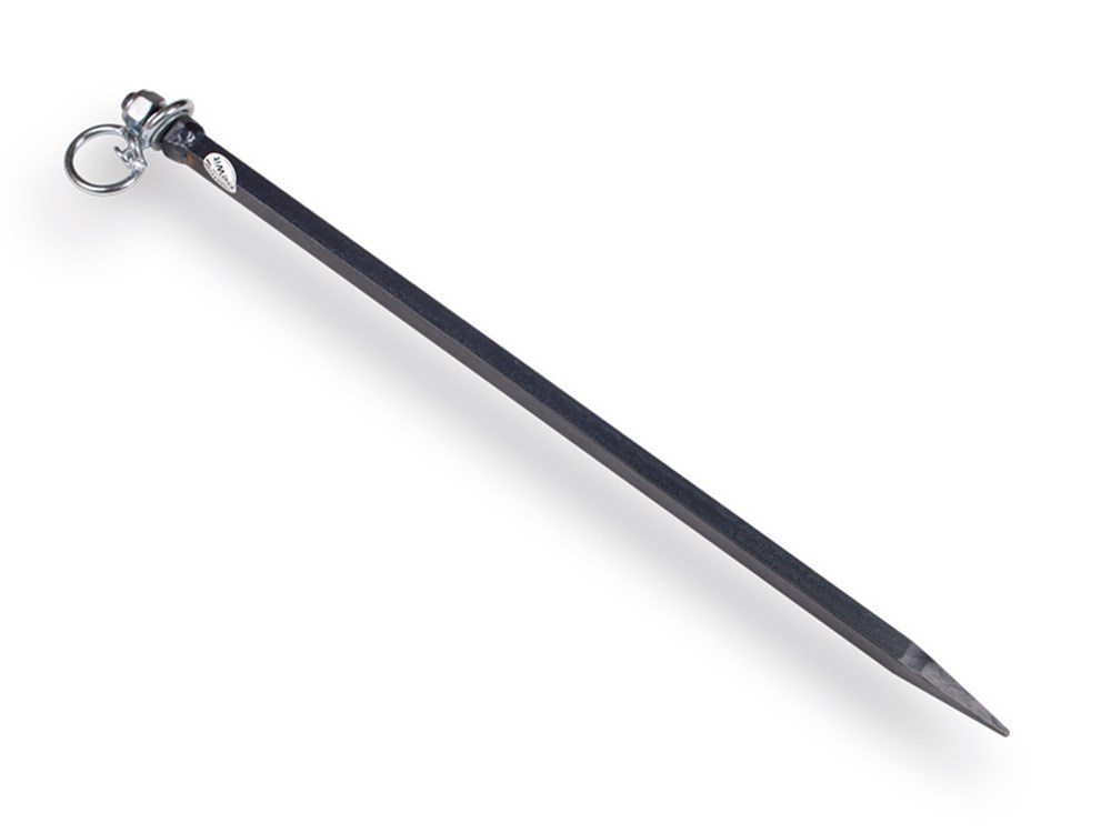 Stik - Spit, 750 x 20 met draaiwartel en gesmede punt. Voor stevig vastzetten van huisdieren of kleine boederijdieren in grasland of gazon. De draaiwartel maakt rondlopen mogelijk. Leverbaar in verschillende maten.