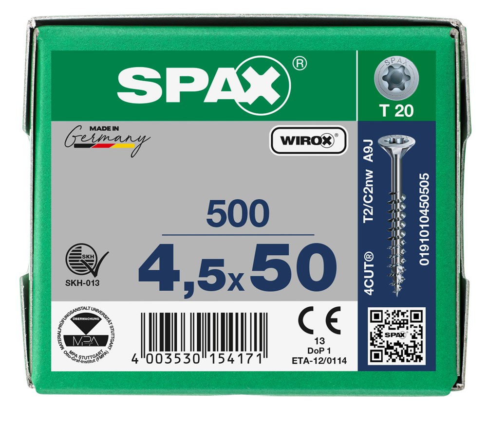 SPAX HOUTSCHROEF VERZONKEN KOP T-STAR PLUS TX20 DEELDRAAD WIROX 4,5X50MM 500ST