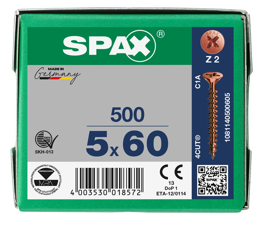SPAX HOUTSCHROEF VERZONKEN KOP POZIDRIVE PZ2 VOLDRAAD BRUIN 5,0X60MM 500ST