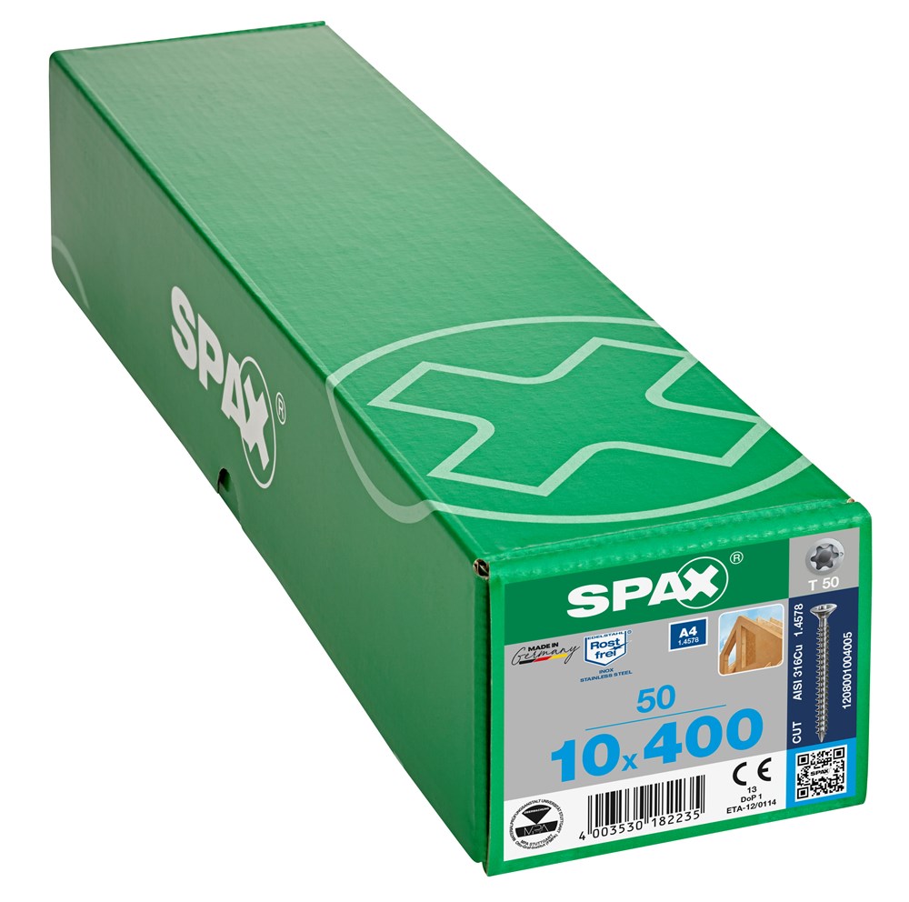SPAX HOUTSCHROEF VERZONKEN KOP T-STAR PLUS TX50 VOLDRAAD RVS A4 10,0X400MM 50ST