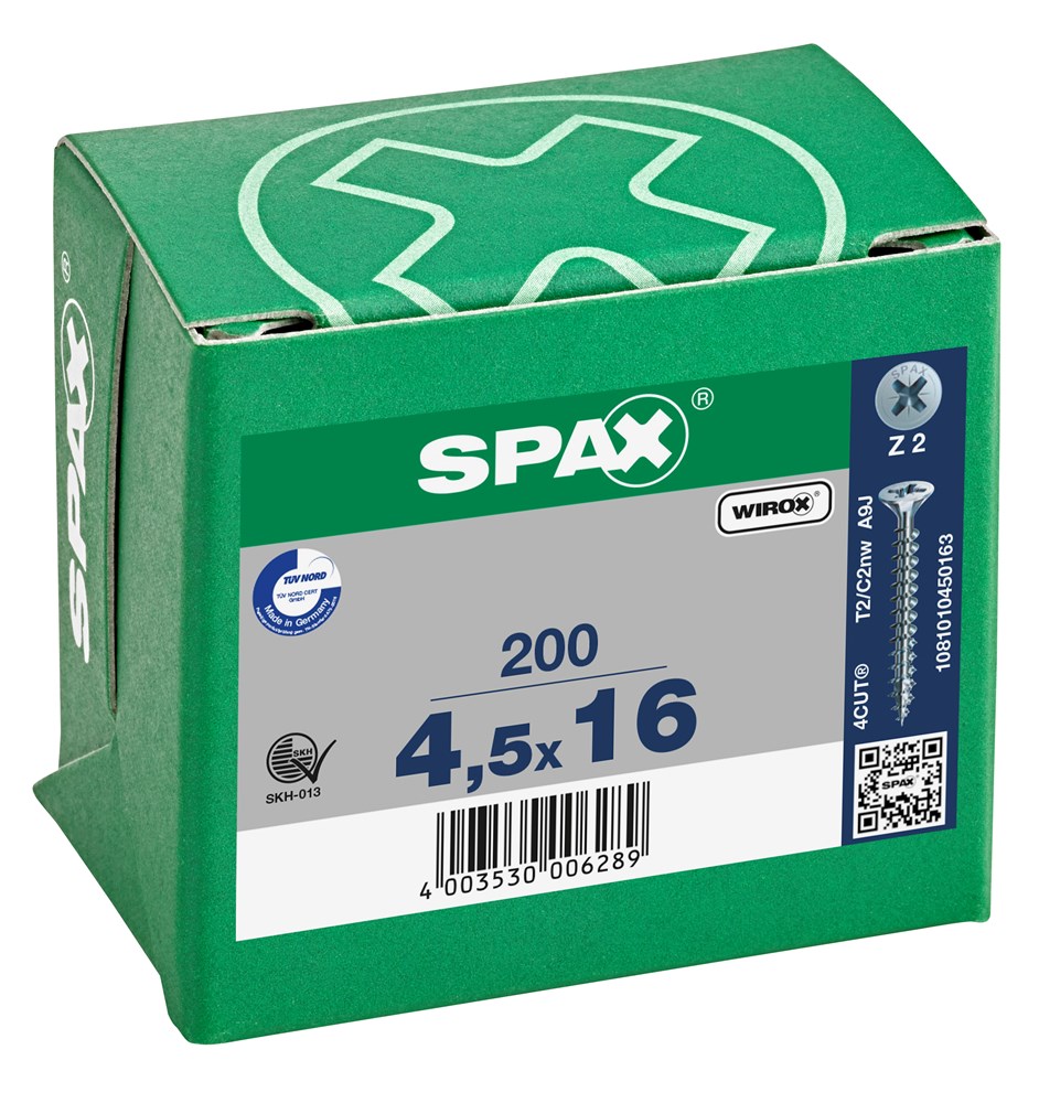 SPAX HOUTSCHROEF VERZONKEN KOP POZIDRIVE PZ2 VOLDRAAD WIROX 4,5X16MM 200ST