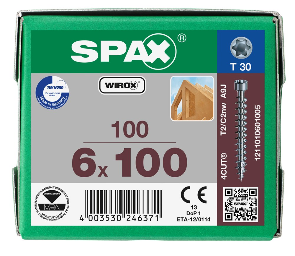 SPAX HOUTCONSTRUCTIESCHROEF CILINDERKOP T-STAR PLUS TX30 WIROX 6,0X100MM 100ST