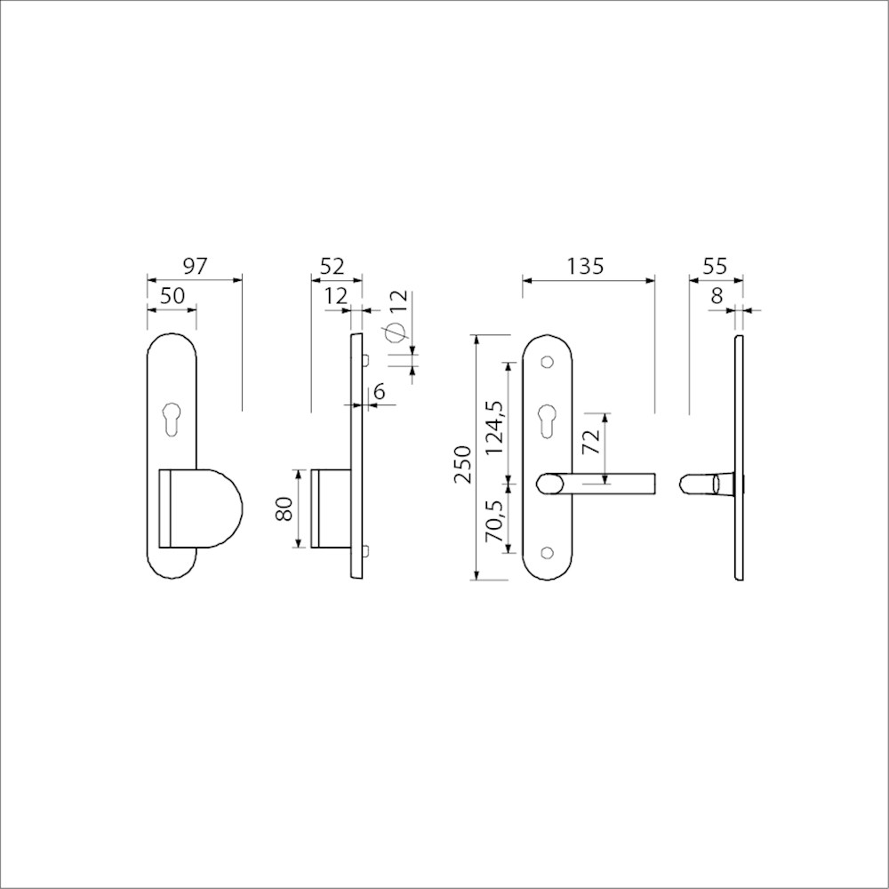 gatdeelkruk 369 M6, quickpuntschroef en 2 schroeven M6 RVS.
