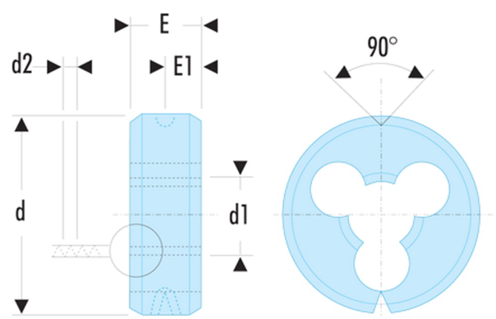 - Metrische ISO-draad, rechtsomdraaiend.