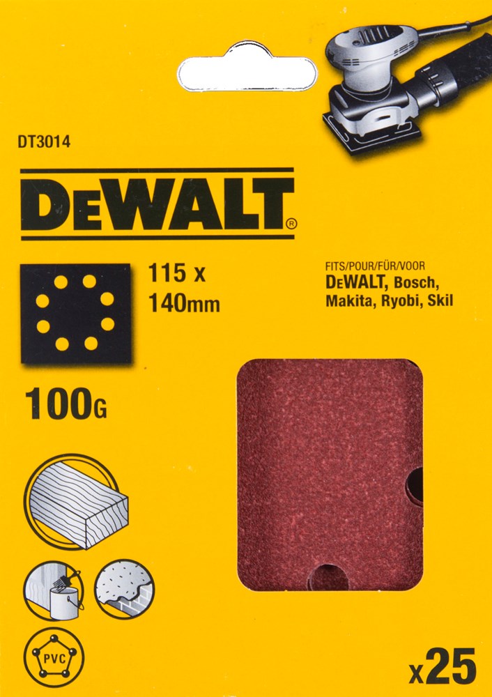 SCHUURVELLEN DEWALT 115X140MM GEPERFOREERD 8GATEN K100 25ST