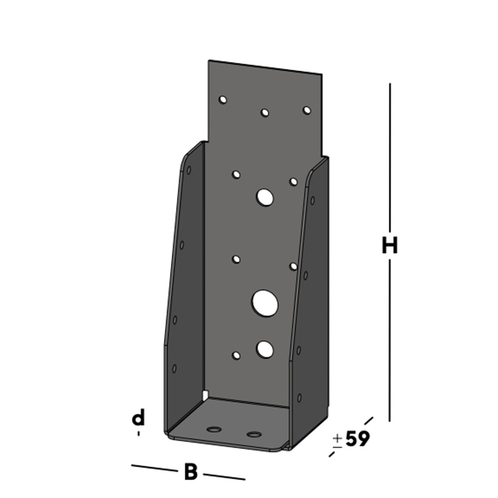 Balkdrager voor het verbinden van dwarsbalken rechtstreeks aan een muur. De balkdrager wordt via de gaten in de rug bevestigd. Hierna wordt een balk ingelegd die via de gaten in de zijkant van de balkdrager kan worden gefixeerd.