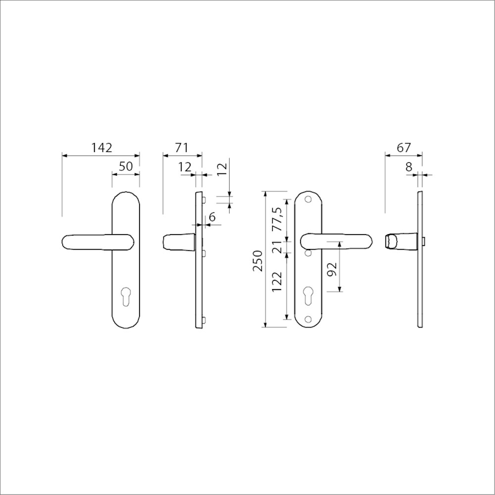 Buitenschild 12 mm met deurkruk 378 ROTA verend vastdraaibaar,