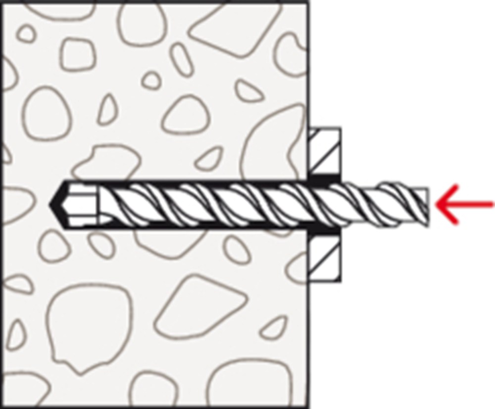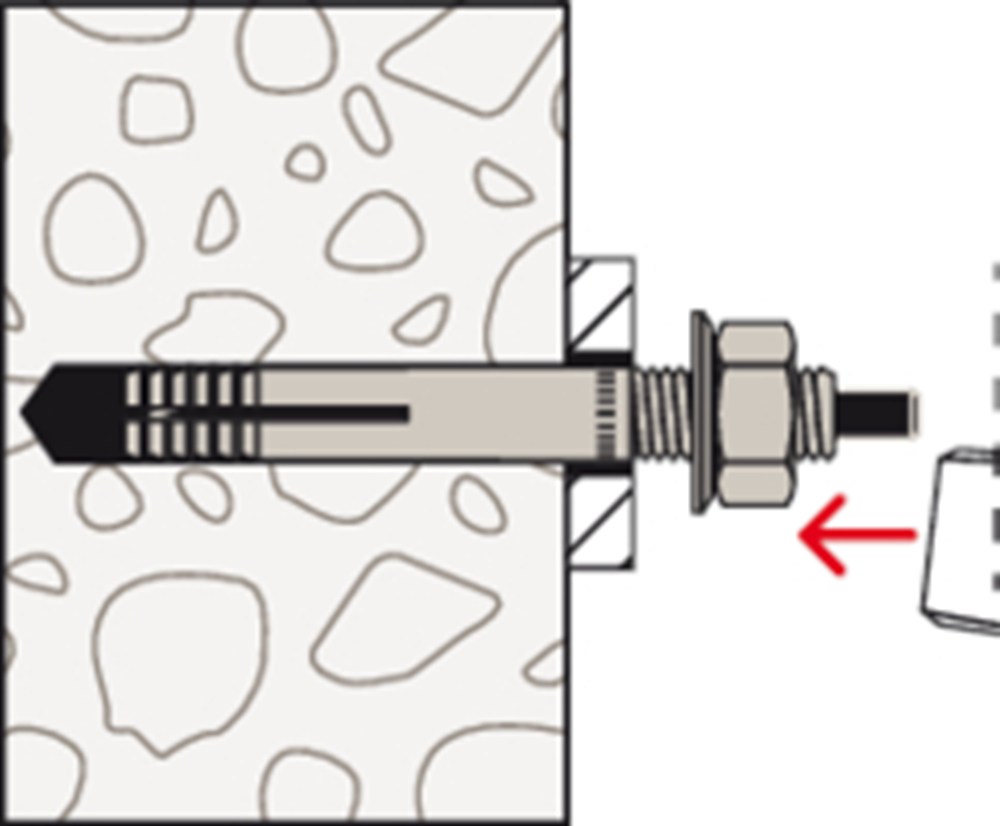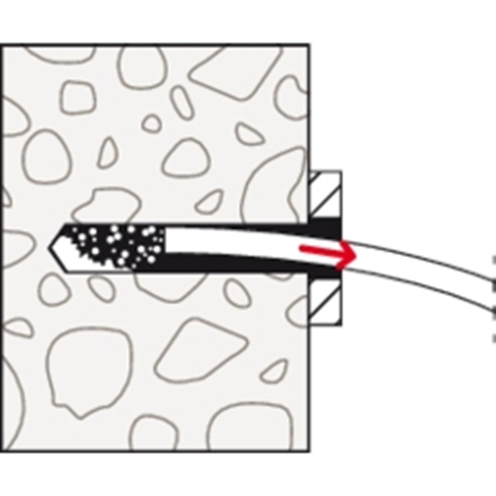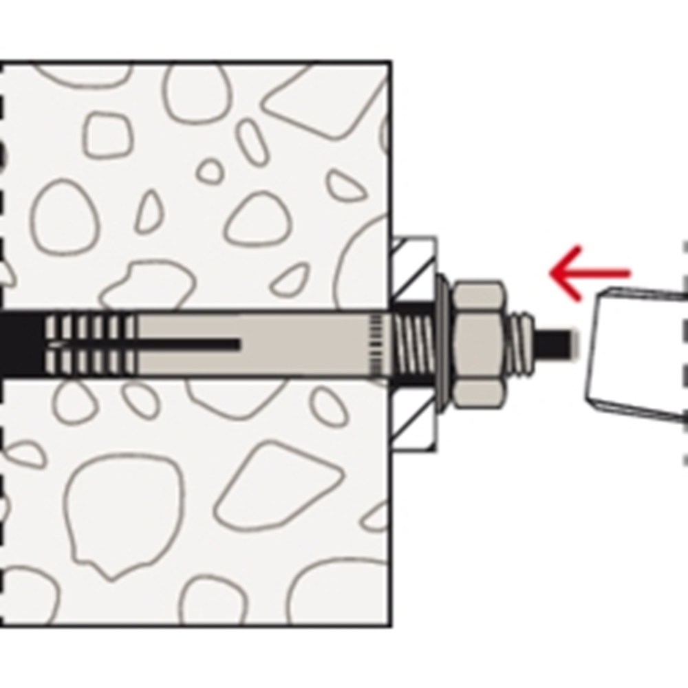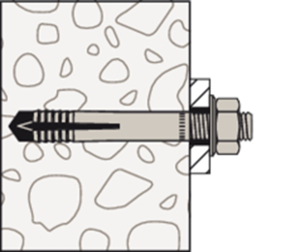 De fischer Muurbout MR is een injectiehuls met een aan de binnenkant liggende spreidstift van gegalvaniseerd staal. De MR wordt gebruikt voor de voor- en doorsteekmontage. Daarbij wordt de injectiehuls zonder spreidstift met een hamer in het boorgat geslagen. Daarna wordt de spreidstift met een hamer ingeslagen. Deze verspreidt en spant de muurbout tegen de wand van het boorgat.