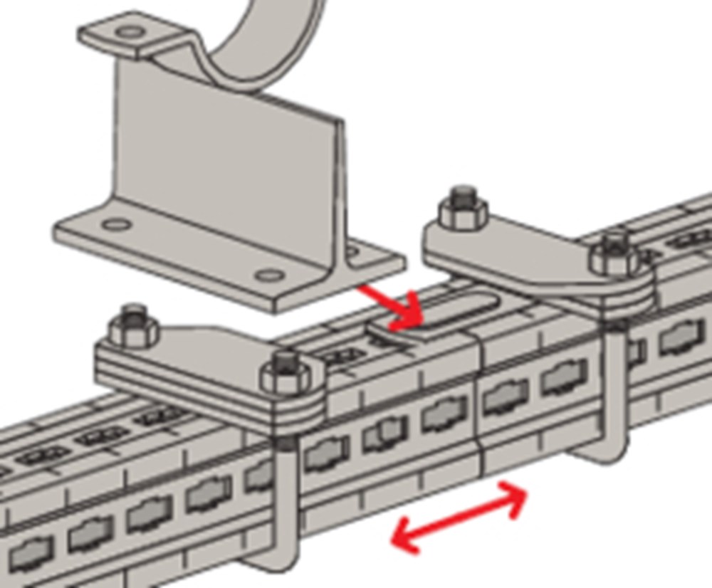 De vaste punten en schuifelementen van het fischer massieve railsysteem FMS zijn draagelementen voor het bevestigen en opvangen van thermische leidinguitzettingen. De massieve FMFS UB-buisbeugel bevestigt de FMPS-pijpschoenen en het FMFS-vastpuntzadel evenals het FMFS-schuifelement om vaste punten of glijlagers te creëren bij bevestiging aan het FMP-montageprofiel. De nauwkeurigheid van de pasvorm van de elementen van het FMS-systeem dankzij aangepaste hoogtes of afstandhouders maakt een eenvoudige productie van de vereiste vaste en glijdende elementen mogelijk.