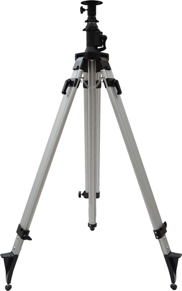 Sterk statief met uitschuifbare poten tot 330cm hoogte voor rotatielasers. Vaste kop met vaste 5/8” schroef die loodpunt naar onder doorlaat. Ideaal voor gebruik buiten.