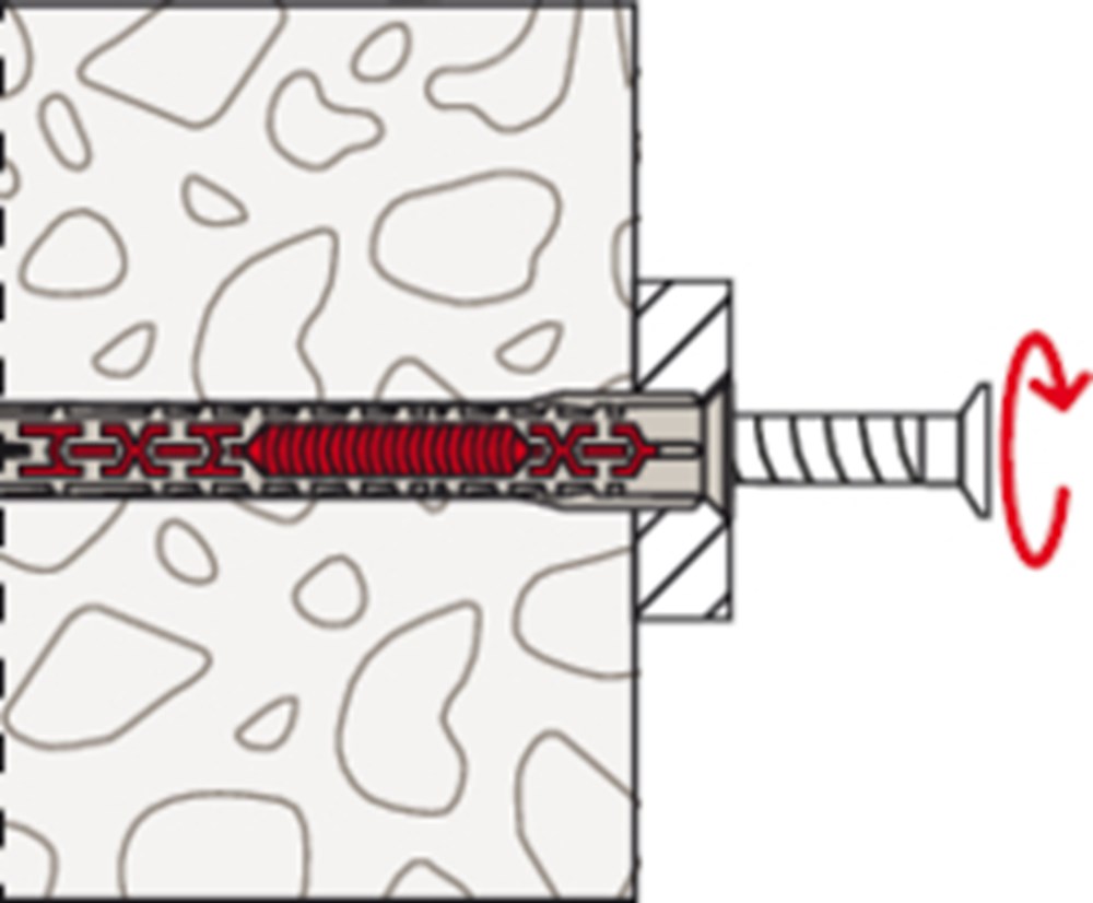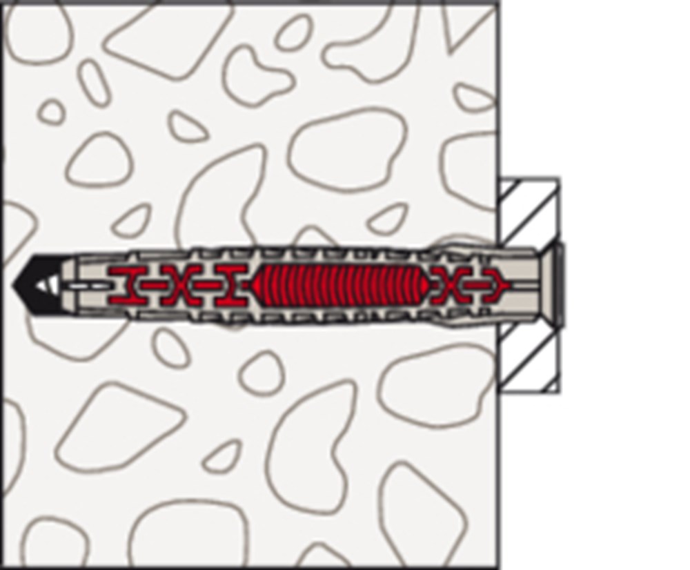 De fischer constructieplug DuoXpand met twee verankeringsdieptes is goedgekeurd voor meervoudige bevestiging van niet-dragende systemen in beton, metselwerk én cellenbeton. Dankzij de speciale geometrie en het gebruik van verschillende kunststoffen, past de plug zich perfect aan de ondergrond aan. Het assortiment bestaat uit diameters 8mm en 10mm en lengtes tot en met 230 mm. De DuoXpand met verzonken kop is zeer geschikt voor het bevestigen van houten constructies in beton en metselwerk.