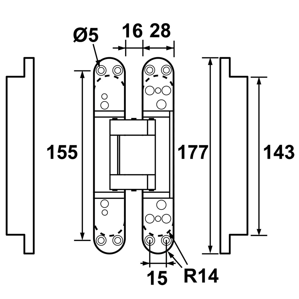 SCHARNIER ONZICHTBAAR AXA 1910 3-D ZWART 177X28X25,0MM 80KG
