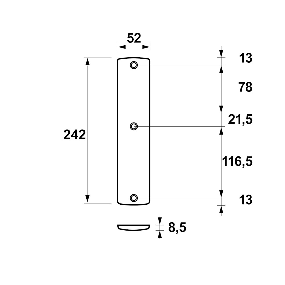 Veiligheidsschild Curve binnen blin/242x52x8,5/alu. gesl. F1/SKG3
