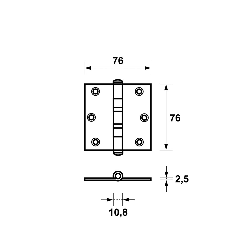 KOGELLAGERSCHARNIER VK AXA 2076 RVS ZWART 76X76X2,5MM INCL.SCHROEVEN