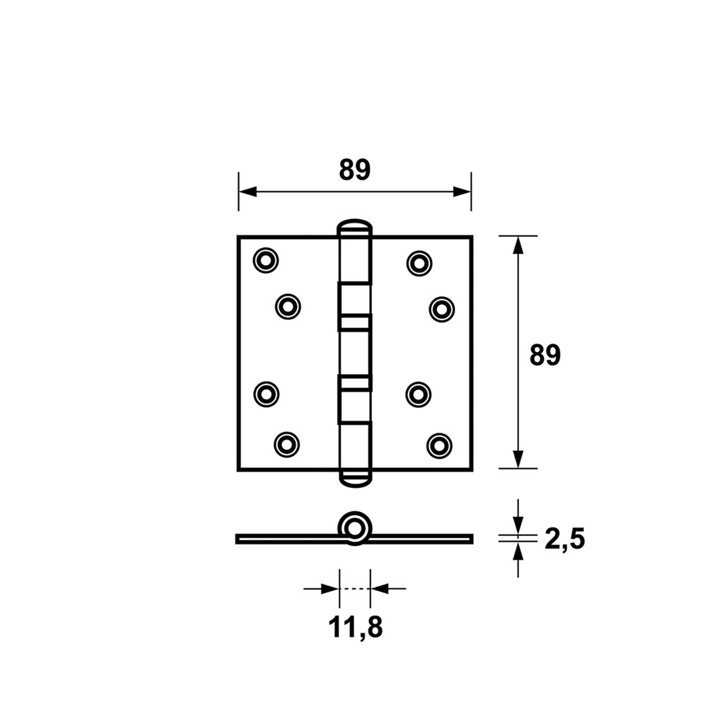 KOGELLAGERSCHARNIER VK AXA 2089 RVS ZWART 89X89X2,5MM INCL.SCHROEVEN