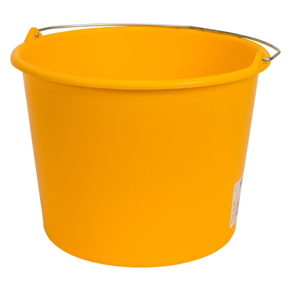 Bouwemmer voorzien van knopbeugel en literscala