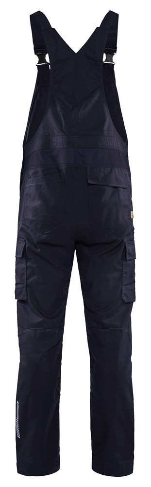 - Industrieel wasbare en krasvrije bretelbroek van behaaglijk katoenen canvas met 2-weg stretch.