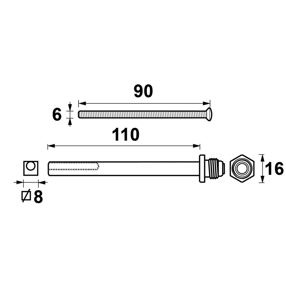 MONTAGESET AXA GREEP/KRUK DD73-83MM 3X BOUT M6X90MM ZWART 1X STIFT 8X110MM
