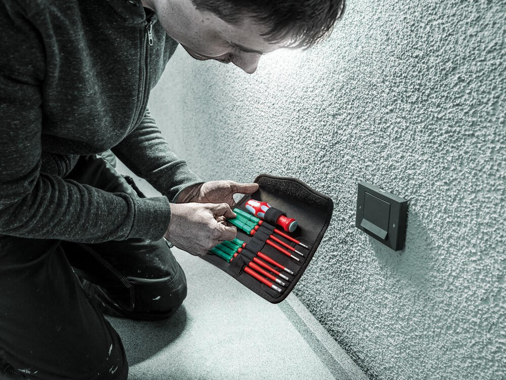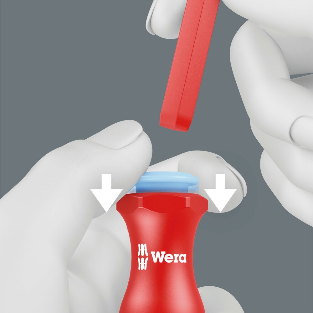 2 handhouder 3817 VDE Kraftform voor ergonomisch werken. 15 VDE RVS wisselklingen, deels met gereduceerde klingdiameter, om ook diepliggende schroeven en veerelementen te kunnen bereiken en bewerken; met "Take it easy tool finder": Met kleurcodering op profiel en ingelaserde maatcode - voor het eenvoudig en snel vinden van het benodigde gereedschap. Individueel getest gereedschap conform IEC 60900. Individueel getest bij 10.000 V voor veilig werken bij de toegelaten spanning van 1.000 V. Al het RVS gereedschap van Wera wordt vacuümijsgehard en beschikt daardoor over de vereiste hardheid en vastheid voor de schroefwerkzaamheden. Kan industrieel zonder beperking worden ingezet. In robuust riemetui. Het etui kan dankzij klittenband aan de achterzijde worden bevestigd aan wanden, rekken, gereedschapswagens en het Wera 2go systeem.