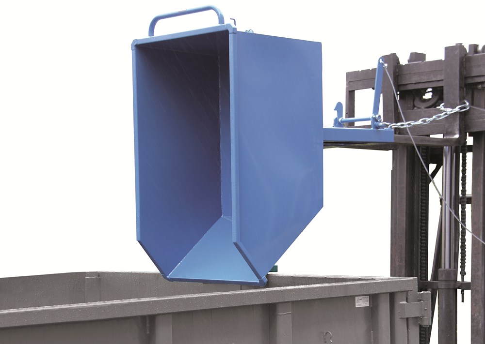 - De kiepbak moet voor het legen met een vorkheftruck omhoog geheven worden