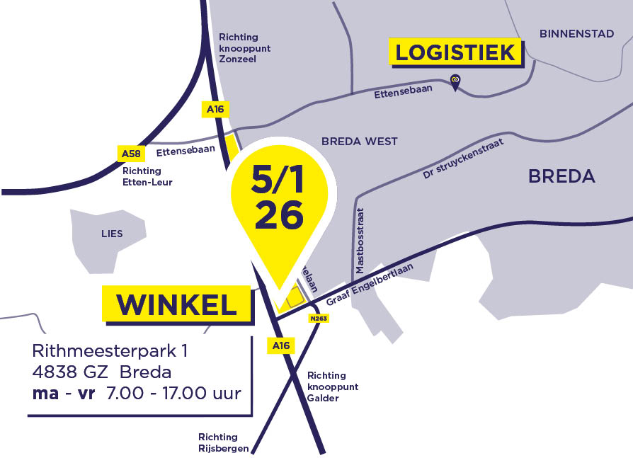 Lecot Breda West biedt een compleet assortiment aan voor de professional, op een centrale ligging vlak bij de A16 en vlot bereikbaar vanuit Brabant, Zeeland, Zuid-Holland en België.